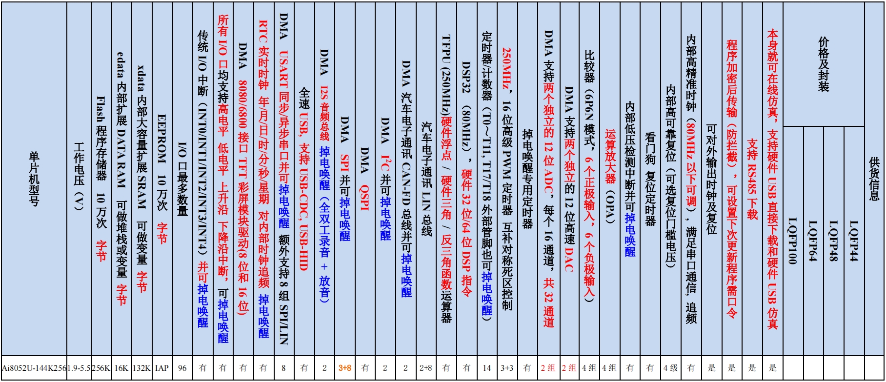 AI8052U-180MHz-LQFP100,LQFP64, LQFP48